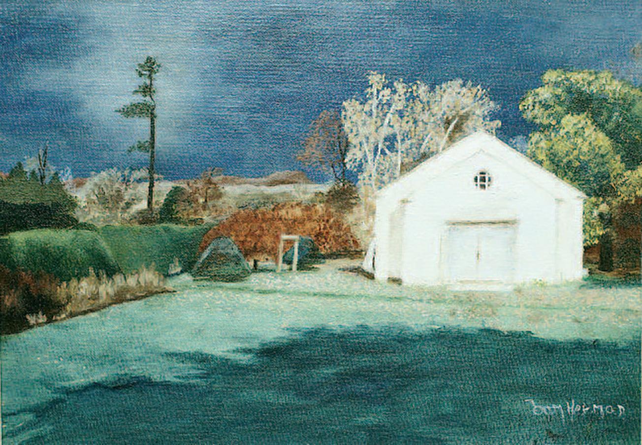“Christmastide” was painted by Joan Shaw Herman ’46 and copied from a color photo taken by Elizabeth Wheeler. It was painted with a brush held in her teeth and was begun March 1959 and finished October 1960.