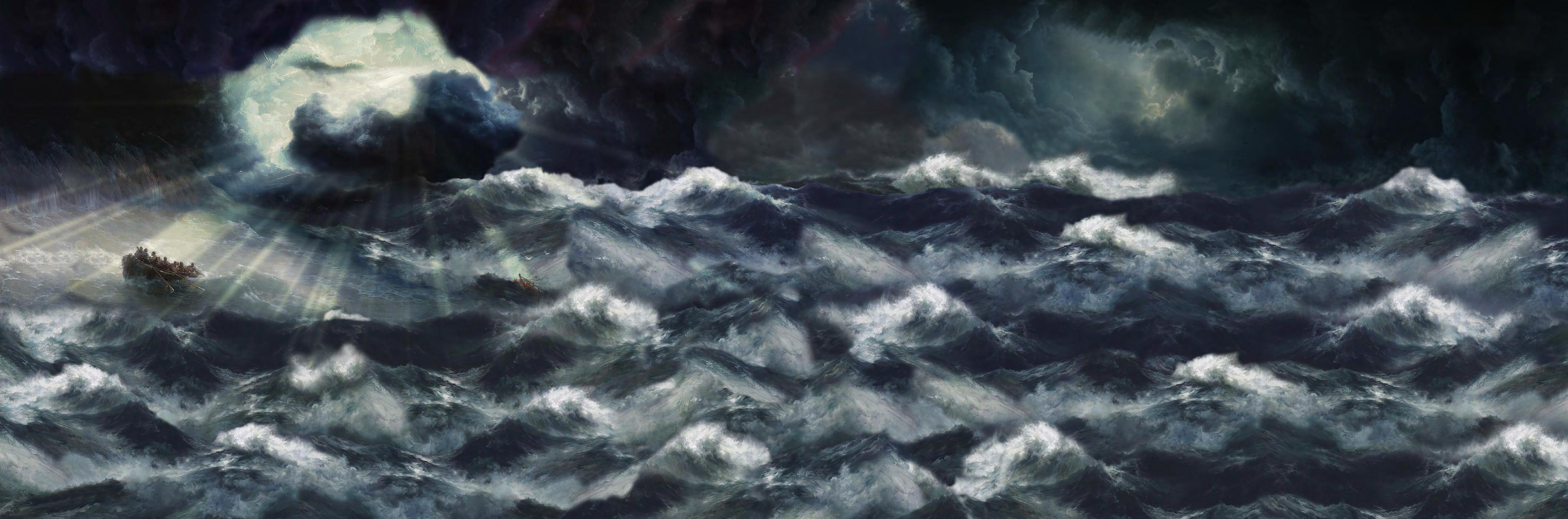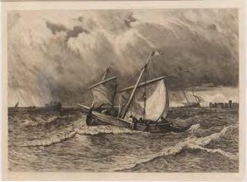 Fishing Vessels in Rough Waters, Robert Kent Thomas (1816 - 1884), (Found in: Bedrooms),