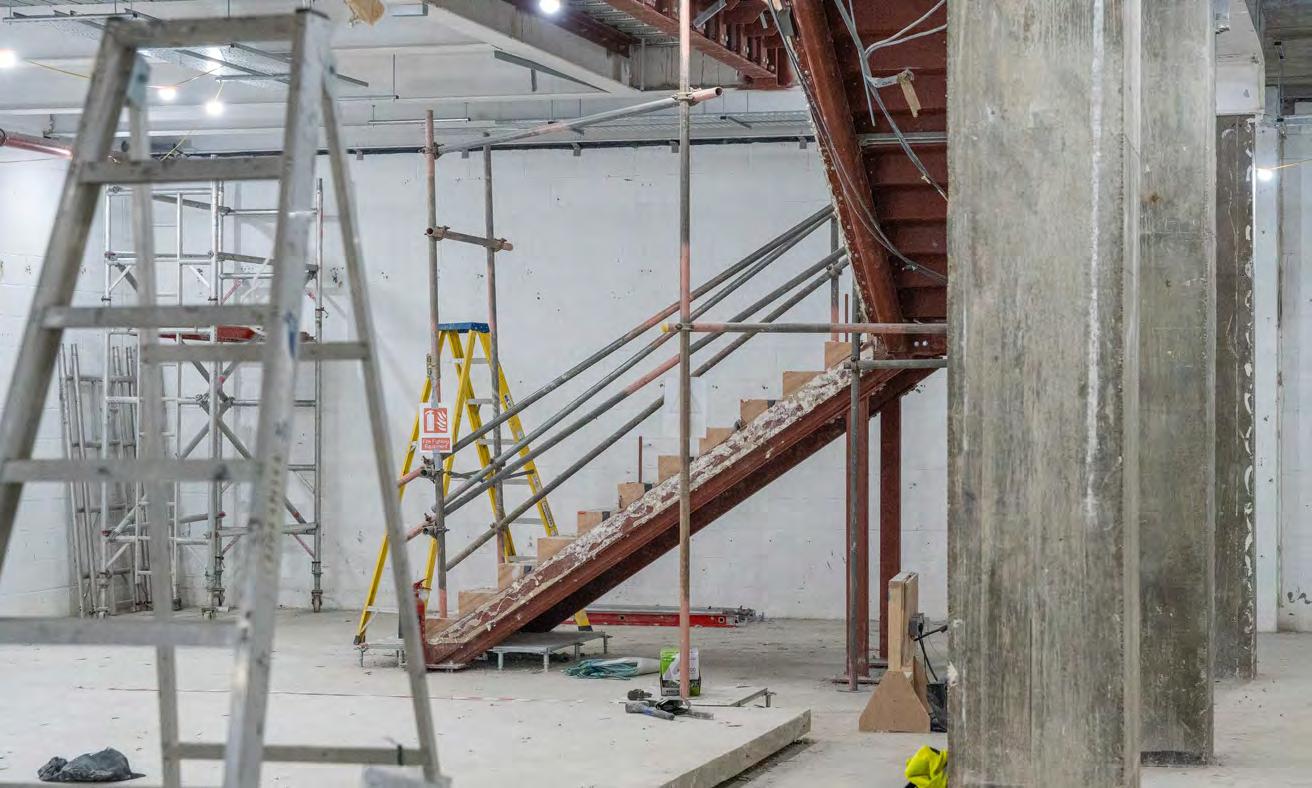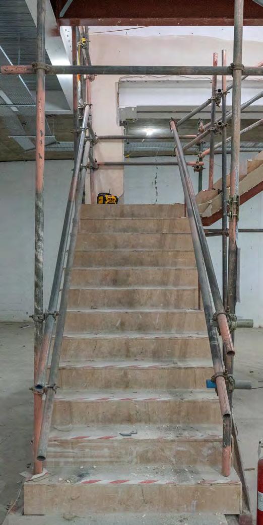 A new stair, installed within the existing floor void, provided access for customers to the lower ground floor, maintaining a discreet connection between the two levels while preserving the openness of