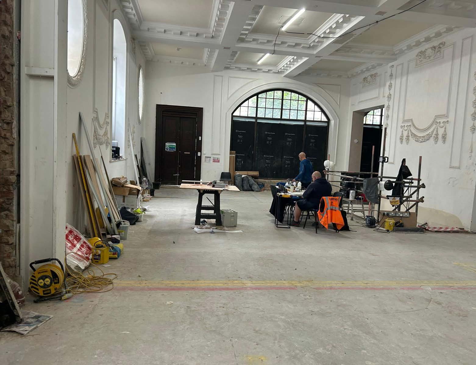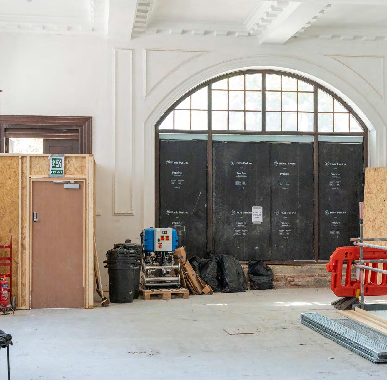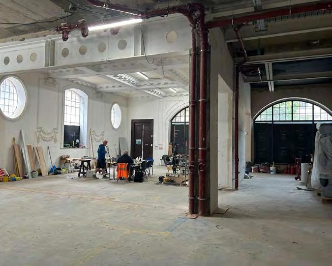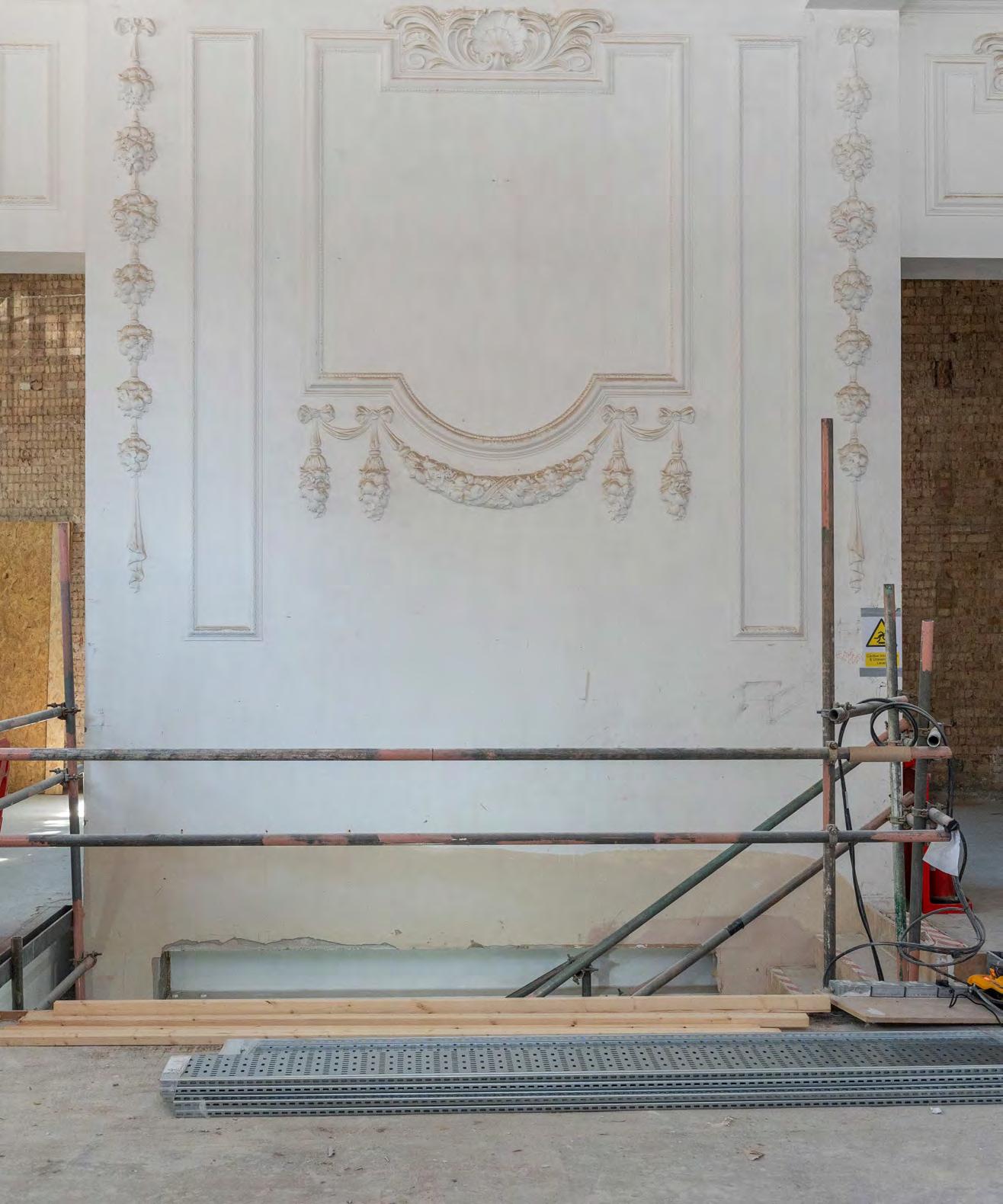 These included decorative window surrounds, plaster mouldings such as panelling and garland details, and the original ornate cornice and ceiling coffers, which remained in place, albeit partially adapted to conceal modern services.