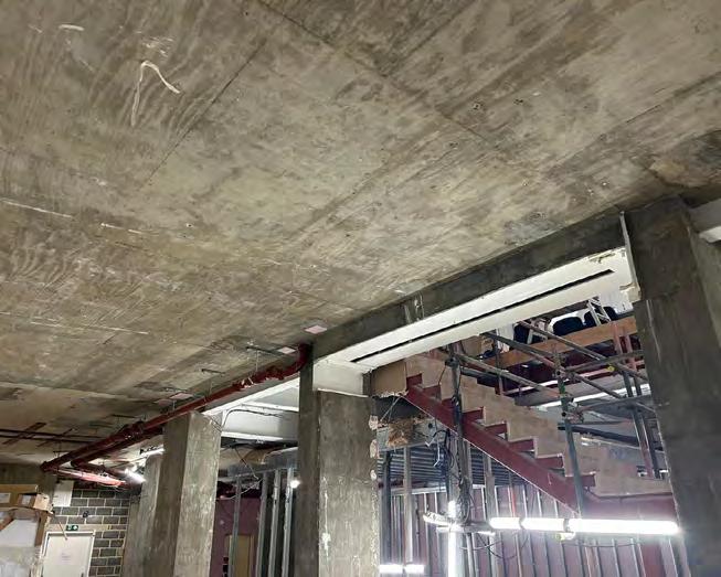 Historically, the areas at the rear of the banking hall and the space originally occupied by 226 King’s Road had been stripped of most original features over time and offered little historical context. The banking hall itself, although altered with openings in the party wall between 224 and 226 King’s Road, retained several notable elements, including decorative window surrounds, plaster mouldings such as panelling and garland details, and the original ornate cornice and ceiling coffers, which remained in place albeit partially adapted to conceal modern services.
