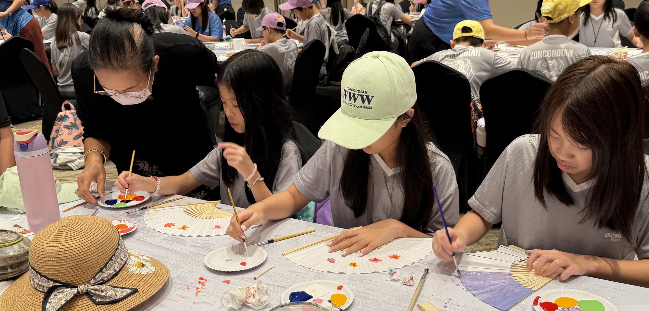 After arriving at the Best Western Plus Carapace Hotel in Hua Hin students participated in a fan-painting workshop led by local artists before sharing a buffet dinner together. After dinner, they enjoyed settling into their rooms and spending time with their classmates before bed.