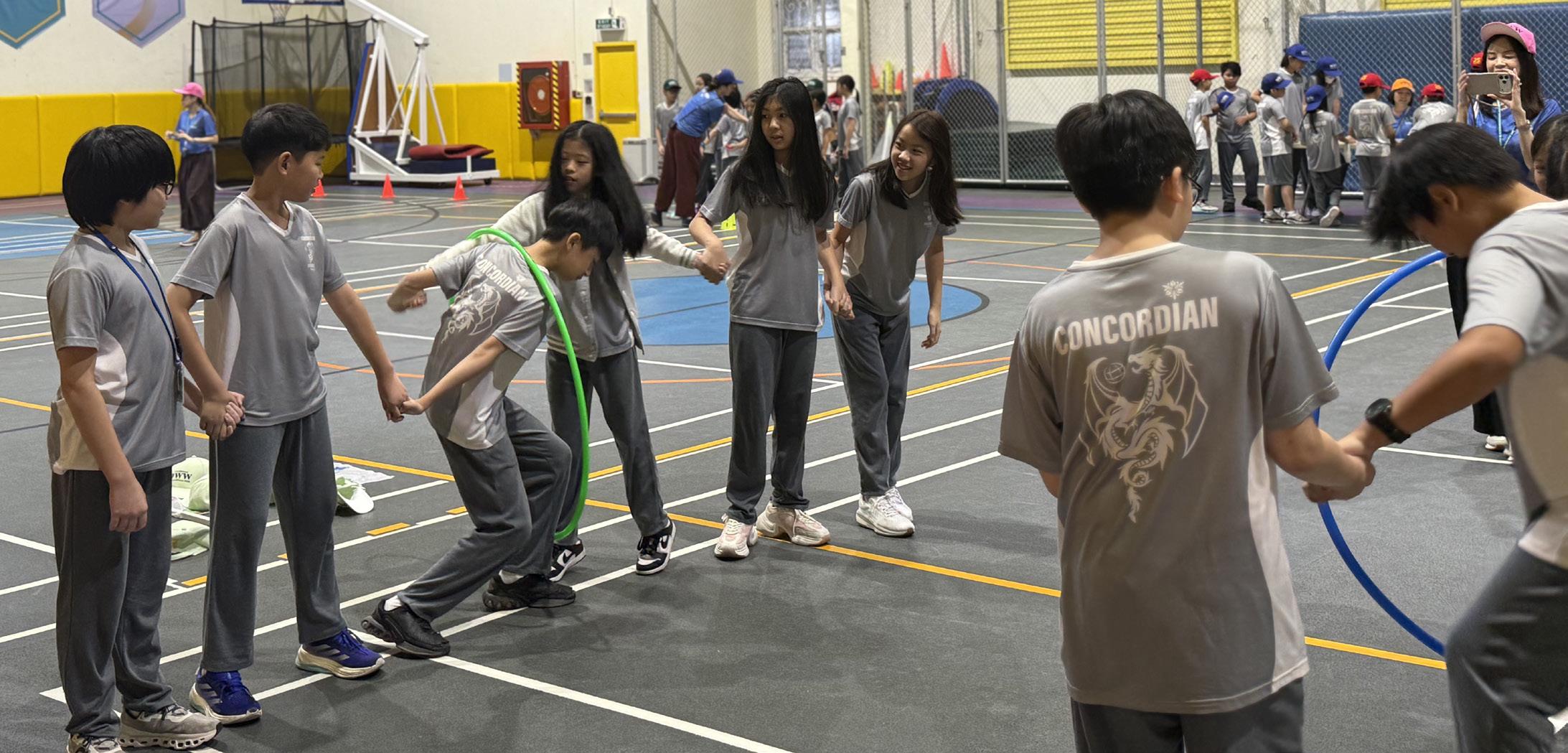 The trip began on campus, where students took part in a series of cooperative challenges. They worked together to design team flags, develop spirited chants, and engage in friendly competitions —including tangram puzzles, three-legged races, and relay events.