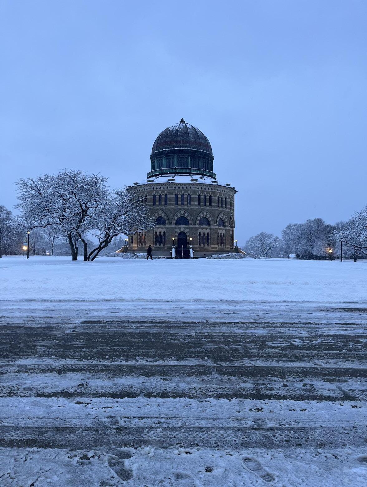As I sit here and write, snow falls behind me. It’s the weekend snowstorm that all of Union has been anticipating (and, perhaps, dreading) for the past couple of days now, and it’s finally here. For my first encounter with snowy weather at Union, it’s exciting. White fluff sits piled over half a foot on the tops of cars in the parking lot and outdoor seating all around my dorm building. I’ve always been truly fascinated with the way snow piles up on the bare branches of trees in particular, and we’ve got no shortage of that here at Union. As a first-year, I don’t have a car to scrape off this winter, and it being the weekend, I really have nowhere I need to be, so I can thoroughly enjoy this little winter wonderland—except I don’t.