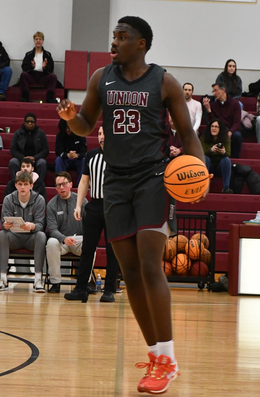 The men began balling on the court at 7:30 p.m., with #22 Edward Baptiste ‘24 making the first score of the game 25 seconds into play. Throughout the first half of the game, the Men’s Garnet Chargers scored at a lower ratio than the Vassar Men’s Brewers, but as the game progressed, Union improved their ratio of scoring attempts to scores.