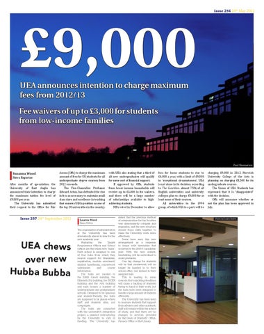 fees for home students to rise to £6,000 a year, with a limit of £9,000 in ‘exceptional circumstances’. UEA is not alone in its decision; according to The Guardian, almost 75% of all English universities and university colleges plan to charge £9,000 for at least some of their courses. All universities in the 1994 group, of which UEA is a part, will be
