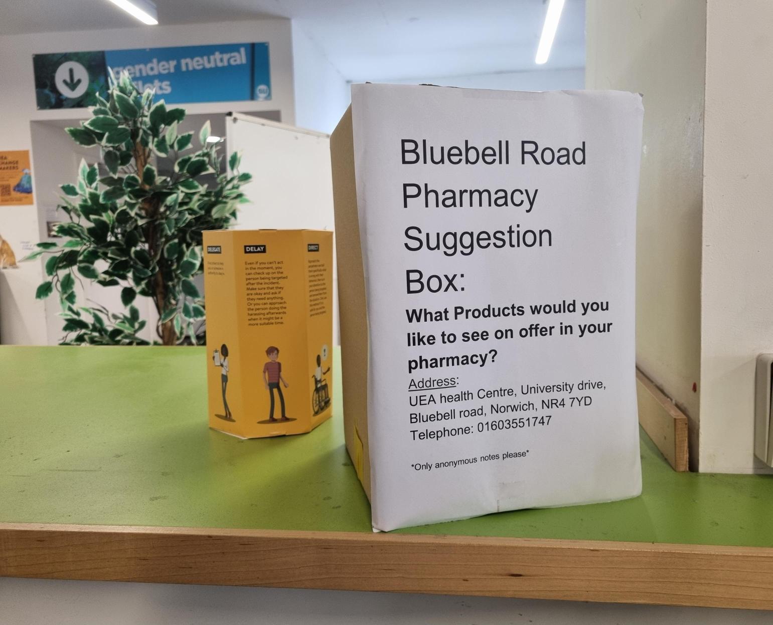 The newly reopened Bluebell Road Pharmacy is asking for student feedback on what to stock. An anonymous suggestion box has been placed by the till in the campus Spar shop, ask-