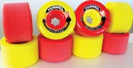 Tunnel Products has added to their growing wheel lineup – the Tunnel Krakatoa wheel, a 70mm wheel designed specifically for sliding and freeriding. The wheels feature a preground surface for immediate sliding capability. The high-grade urethane is formulated for controlled slides with a clean hook-up and has a resiliency that allows for longer wheel life. Available in 78A Orange, 81A Red and 84A Yellow. tunnelskateboards.com