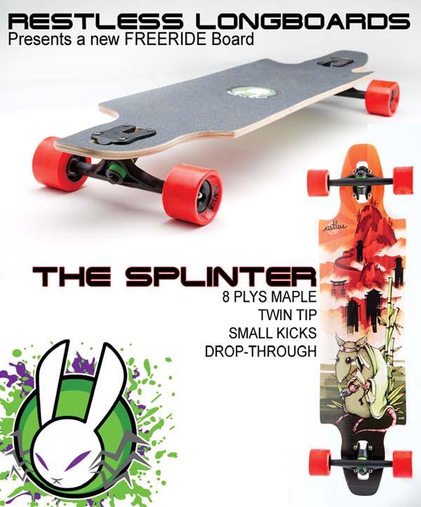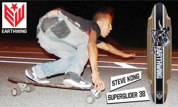 This is version No. 7 of the Earthwing Superglider. It features mounting holes for Indy and RKP trucks so the wheelbase remains unchanged, and it accommodates both new- and old-school baseplates. It’s available in 4-ply and 5-ply maple sandwiched in pretensioned unidirectional carbon and S-glass. earthwingskates.com