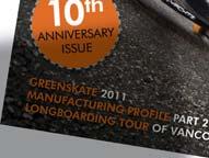 Vol.10 No.1SUMMER 2011 Complimentary to all skateboarders and their friends and family GREENSKATE 2011 MANUFACTURING PROFILE PART 2 LONGBOARDING TOUR OF VANCOUVER