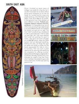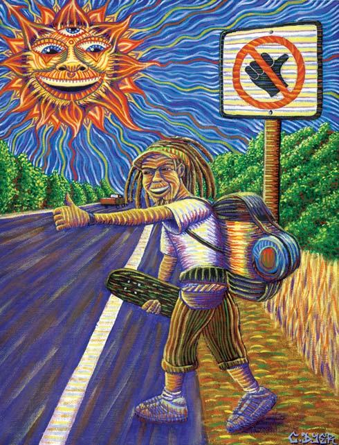 Welcome to 2012 and what promises to be quite a year. I am pleased to report that our last issue resonated deeply with a number of readers. Our intention this year is to continue to explore the essence of search/spark/stoke. This issue features a story about spirituality and longboarding. It’s probably the first time a skateboard magazine has tackled this topic. We asked readers to give us their insights, and I am sure you will find the article fascinating. I am honored that we were able to work with one my favorite artists, Chris Dyer, to enhance the article and one of our four covers. The interview that I conducted with Tom