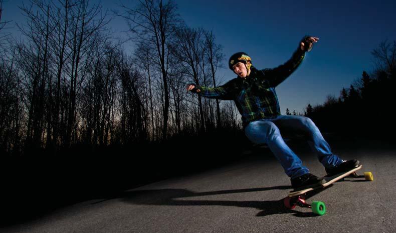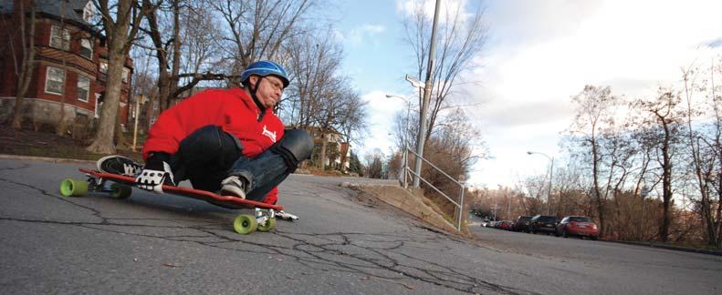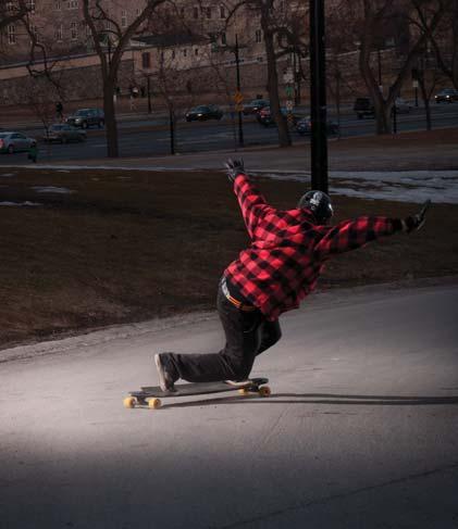 Longboarding and music are two sides of the same coin: tuning your own sound, feeling your own style, screwing your bolts, twisting your knobs, shredding your wheels and destroying your strings. In songwriting you have a band. Like a band, you need to have on a team the right riders and they have to riff off each other. Everyone knows chords, carves, turns and notes. Just like a blank piece of sheet music, the streets of Toronto are there to perform your