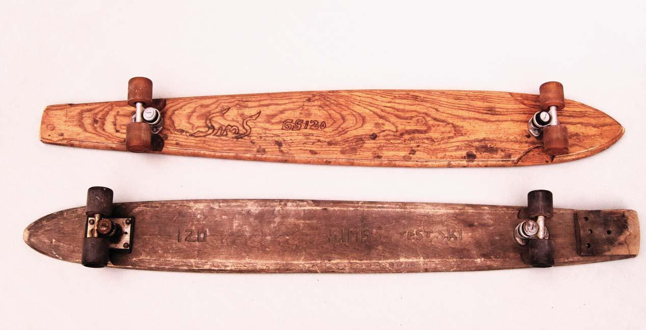 Skateboards were based on surfboards. Skateboarding started in California but nobody knows who made the first board. It was collectively created by a group who wanted to surf when the tide was flat. The original board is lost. It should be hanging in a museum.