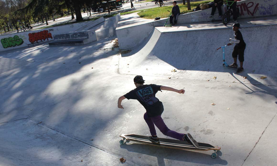 Artists make their marks on canvases and in stone and metal. Skaters such as myself leave our marks on the streets we ride. Seeing wax on curbs is like an assembled inuksuk. Seeing grinded rails is like a dog pissing to mark its territory. The graffiti in skate parks is our flag, forever to be flown. –Moises