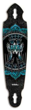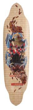The Woodsman is a 9ply, 10.5” x 39.25” maple/bamboo hybrid, The trucks are top mount with a 32” wheelbase. The base features the Woodsman graphic with raised woven bamboo while the Top Deck uses a full sheet of grip tape. The rear of the deck has a one of a kind “Shred Hump” and the main section is shaped with a “W” concave. dblongboards.com