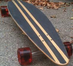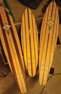 Danial Wiggins, an old school competition slalom rider from the 80s on the Bahne East Coast Team is making vertically laminated, light weight long board skateboards. As much fun to ride as they are to look at. ecscustomskateboards.com