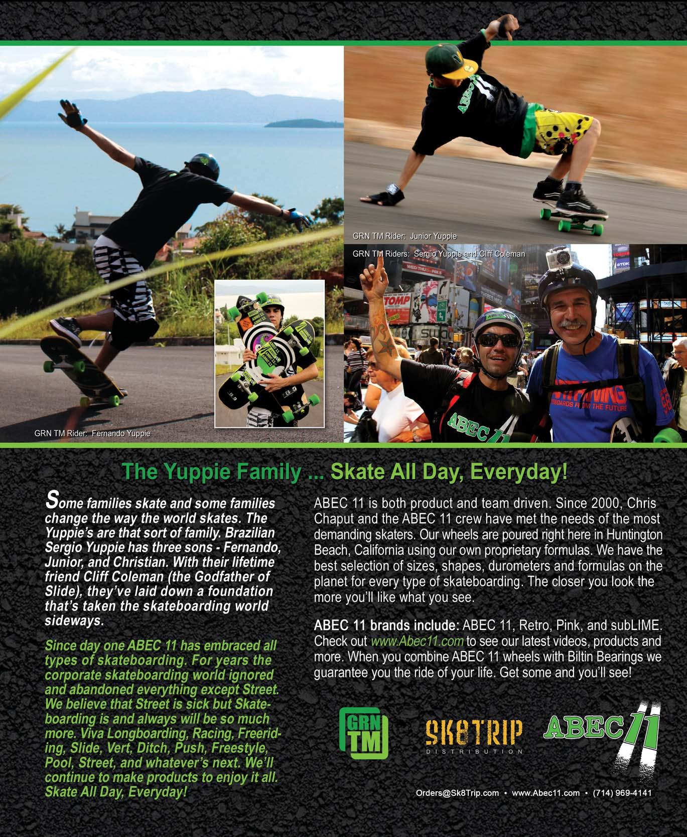 CONTRIBUTORS (In order of appearance): Amber B. Dianda, Marcus Bandy, Warren Bolster, Pedro Krause, Chris Dyer, Richard Auden, Mike Cottrell, Jose María de la Cierva, Nell Fraser, Jeff Hayes, Melissa Fuentes, Bruno “NoBru” Ribeiro, Gabriel Klein, Thomas Kahle, Nick Breton, Rodgon, Tom Sims, Mike Vallely, Robert Groholski, Mike Spotte, Ken and Steve Deitz, Martin Duquette, Fabrice Gaëtan, Olivier Séguin-Leduc, Bob Couet, Mikael Bottreau, Luc Bertrand, Toronto Girl Longboarders, Jonathan Nuss, Karyl Kidd, Oasis Skateboard Factory, Conan Muñiz, Diego Cardenas and Liz Kinnish. A speedy recovery to both Jonathan Harms and Chance Ray.