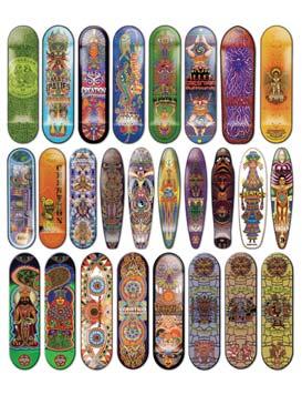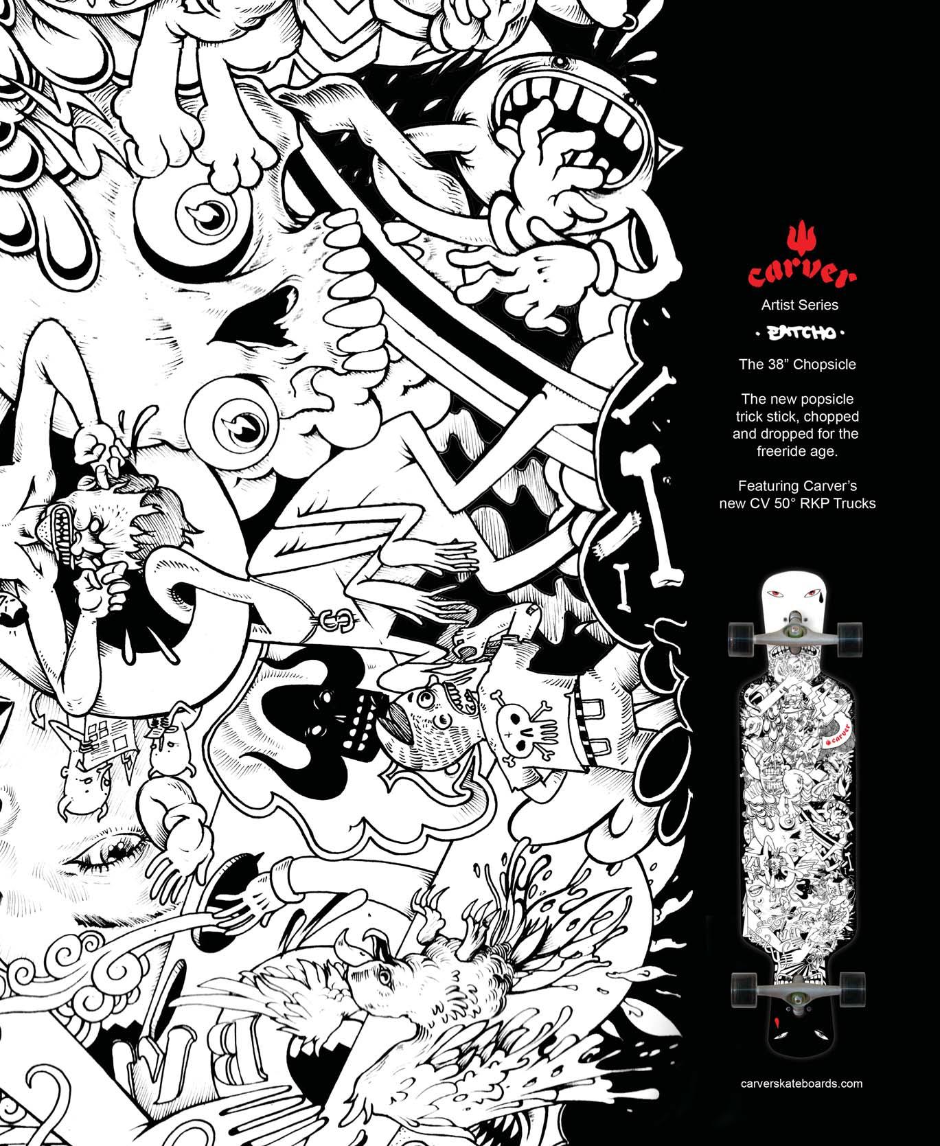 The reason I got into designing skateboards was my love of tattoos. I believe tattooing and skateboarding are similar because its all about leaving your own personal mark in the world, whether it is on the streets or on a body. When designing a board, I feel like I’m a tattooist. I draw a quick sketch, then I apply my art to my board, leaving my own personal mark on it. When you’re grinding on a board, you leave a scratch on your board and the rail. The scratch isn’t a bad thing. It shows that you know how to skate and grind. When you’re done the grind though, you leave a mark, tattooing the rail itself. –Jake