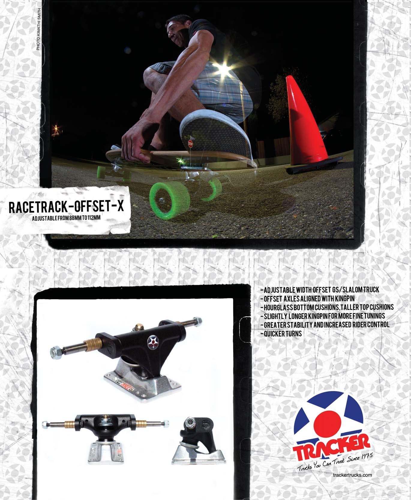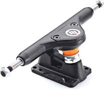 position exists between two bushings, the pivot position of Method’s NC and ZC trucks sits just under a hardened steel hanger cap at the end of the kingpin. This pivot position increases the pivot angle, or roll axis, of the truck, which in turn allows the truck to make tighter, harder turns. methodskateboards.com