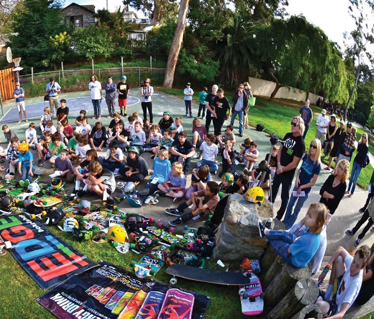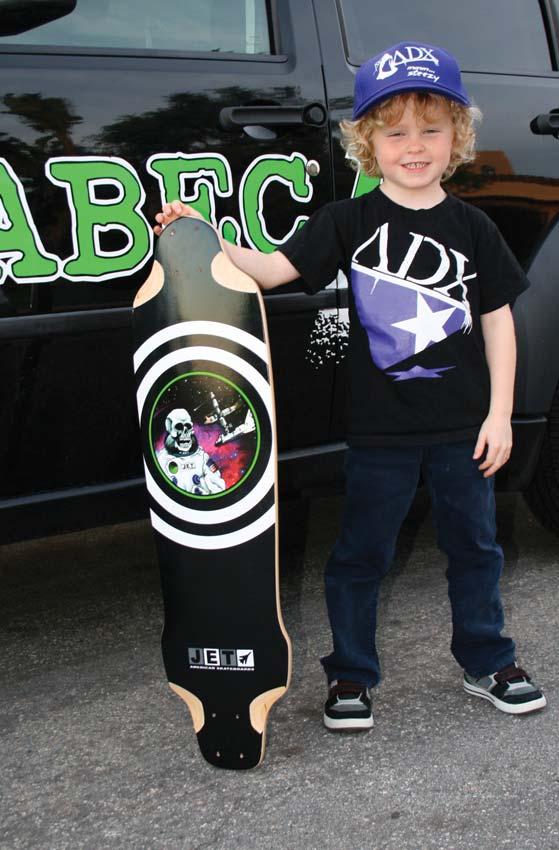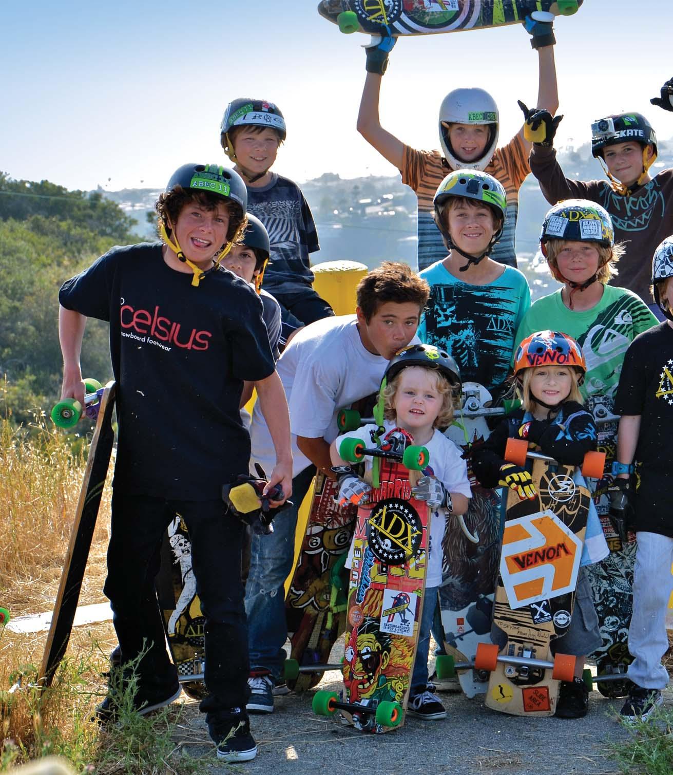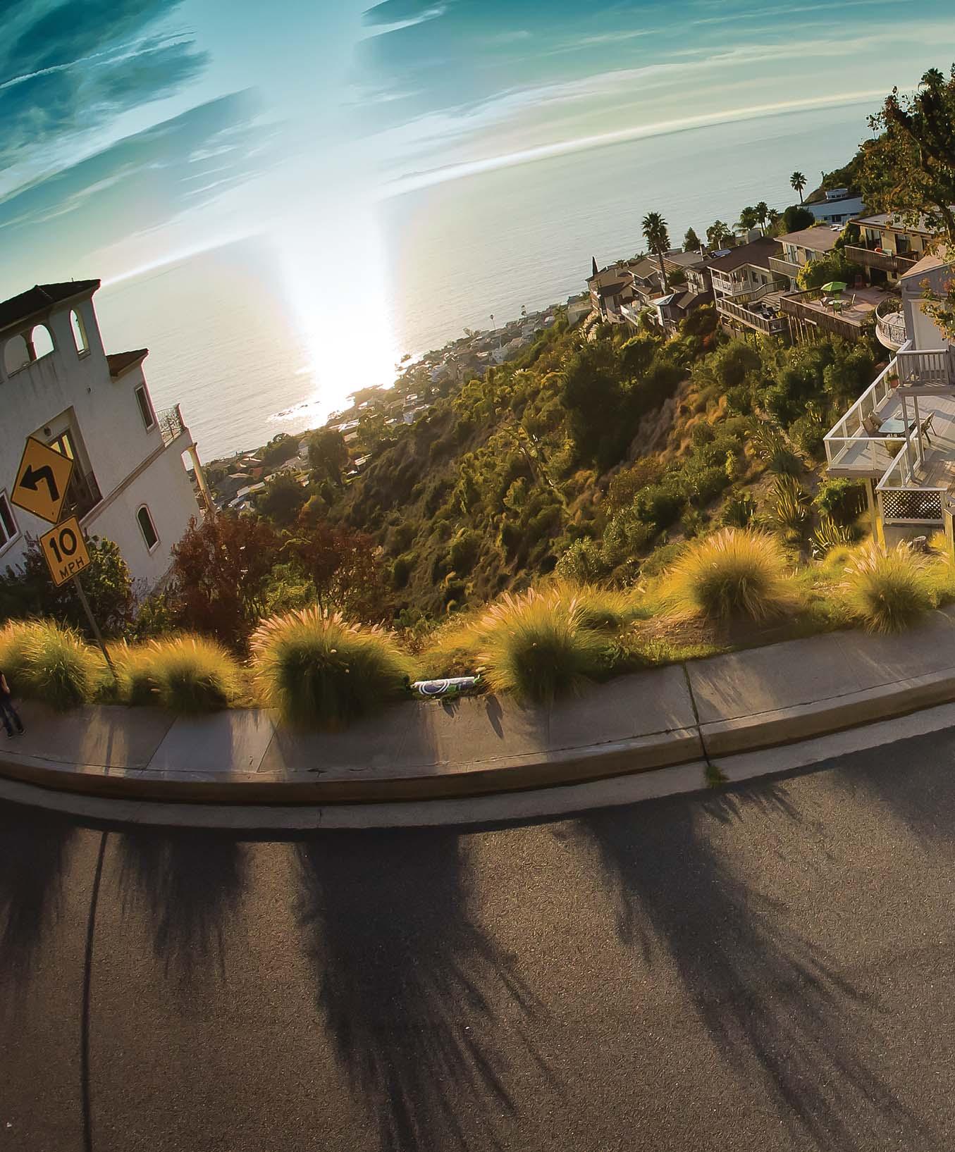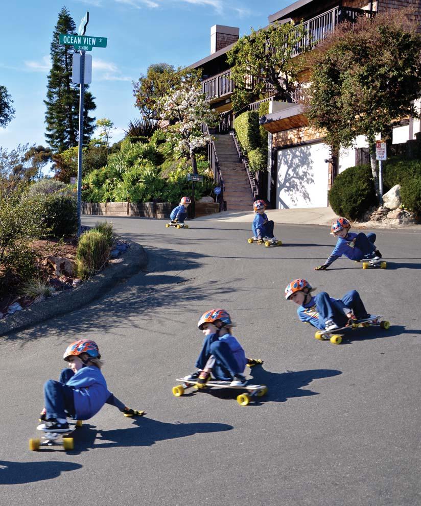 Iold. I was staring at a new color television set that had been delivered to our house. The year was 1969 and the Apollo moon landing was all over the news. So, other than hearing Beatles songs on the radio, the original moonwalk from Buzz Aldrin is all I seem to recall. Skateboarding wasn’t going to be a part of my life until six years later. So you can imagine how I felt when I saw this pic of 5-year-old Jude Young. He’s been skating since the age of 3. He’s learned to skate fast, stop fast and of course do stylish Coleman slides. As you’ll soon discover in this issue, there is a gang of groms down in Laguna Beach, California, and they are truly a force to be reckoned with. If Jude sticks with longboarding until he’s 65, this means six full decades of rolling. But why would he want to stop at 65? After all, that’s just an