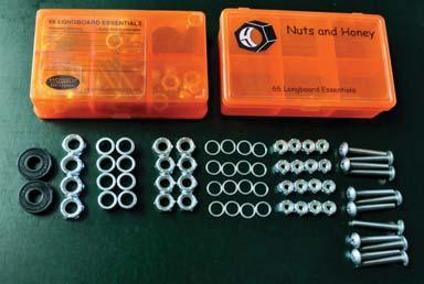 Nuts and Honey hardware kit has 66 pieces of topquality essential longboard hardware. It contains enough to build a board and still have extra for those emergencies. Put a case of Nuts and Honey in with your skate gear and always be prepared for the unexpected. honeyskateboards.com