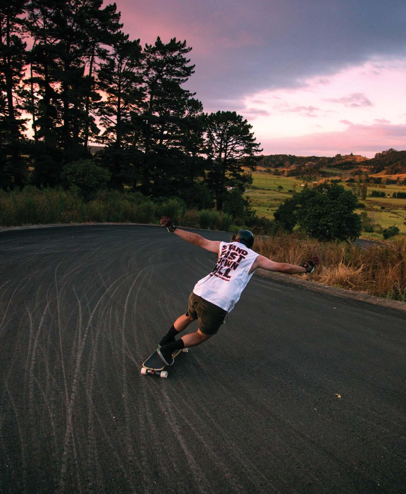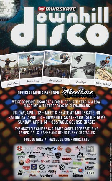 On a final note, this photo was taken in April at the Downhill Disco in San Diego. For the past couple of years, Scott Lembach, the owner of Muir Skates, has given back to the longboard community and hosted this truly special event. Scott’s stoke for longboarding is off the charts, and this event is highly anticipated. Dan Bourqui’s shot brilliantly captures the energy of longboarding in a truly magnificent way.