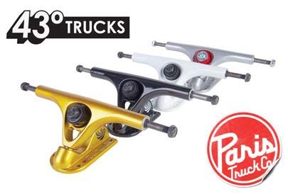 The new 43-degree “Prandal Killer” from Paris can be ridden by anyone. It really was designed with the rider who has that “need for speed” and who wants a truck that will perform. The Paris 43-degree has a ride height approximately 1/8” lower than the 50degree Paris, and an increased lean vs. turn ratio for a more stable ride at high speeds. paristruckco.com