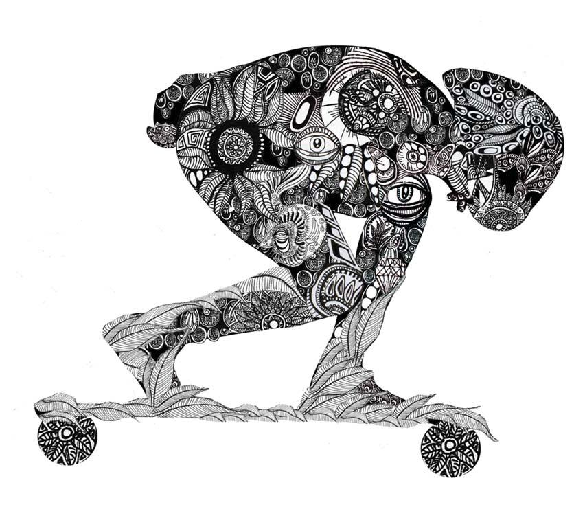 I’ve been living on the road since 2010, traveling, skating and exploring this amazing planet we are fortunate enough to call home. Being a part of a loving skate community that shares stoke and love like a family, I feel safe and eager to keep on exploring every little aspect that makes up life. Drawing is my way of meditation, and skating and surfing a way to exhale all my energy.