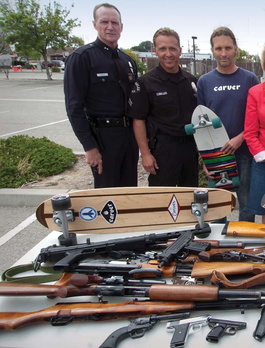 FINE PRINT: I simply cannot believe how much has happened over the past year. As we hit Vol. 12 No. 1, I am absolutely astounded by the amount of support we’ve received for Longboarding for Peace. What started out as a dream has become reality. Thanks to t incredible generosity of longboard companies and volunteers, the program is really having an impact. In this issue you’ll learn how Neil Carver worked with the San Pedro, Calif., police department to exchange 12 fully automatic weapons for longboards. The guns are off the streets and the opportunity for these weapons to increase the amount of pain and suffering has come to an end. longboards have an opportunity for spreading joy and happiness. This is what longboarding for peace is about. Are you increasin amount of joy and happiness or decreasing the amount of pain and suffering? Sure, we sometimes cross these two, but on the whol I’d like to think your journey with longboarding is keeping you balanced and moving you forward.