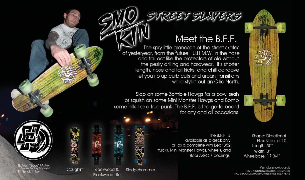 The Super Fatty was born and bred in, and for, the streets of San Francisco. The Bonzing team created this board for smashing downhill, curbs, sidewalks, driveways and anything in its path. It has a big nose and tail, a large platform for downhilling and a concave that can accommodate you over the trucks. californiabonzing.com