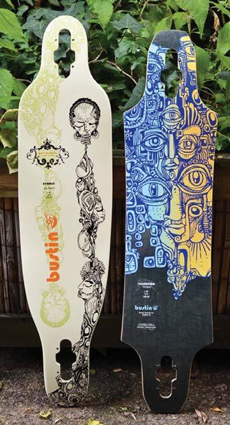 The Jati Fu is the company’s latest edition. With its carbon fiber, fiberglass and maple construction, the deck is light in weight but still stiff. With its radial concave, mellow W and flared wheel wells, the Jati Fu will definitely lock the rider in for the tightest technical runs or bombing the steepest mountain pass. jatiboards.com