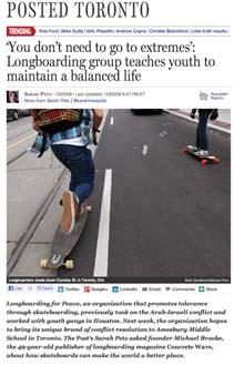 We are starting to get mainstream attention for Longboarding for Peace. The Times of Israel documented Mikey Seibert’s incredible work in Houston, and Canada’s National Post explained the concept of using longboards as a way to teach balance to students.