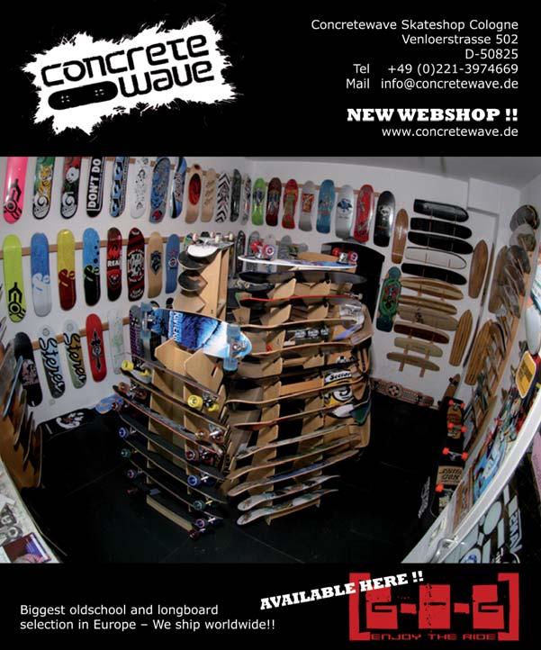 Subscriptions (5 issues) are US$26 FIRST CLASS or CAN$26. Address change? Mag not arriving? Email us... don’t go postal. We can sort it out. mbrooke@interlog.com. We will notify you when your subscription expires. Publisher’s permission is required before reproducing any part of this magazine. The views and opinions expressed in Concrete Wave are not necessarily those of the publisher. We happily accept articles and photos. Please contact the publisher directly at mbrooke@interlog.com before you submit anything. We are looking for a variety of stories and images as long as they are skate-related.