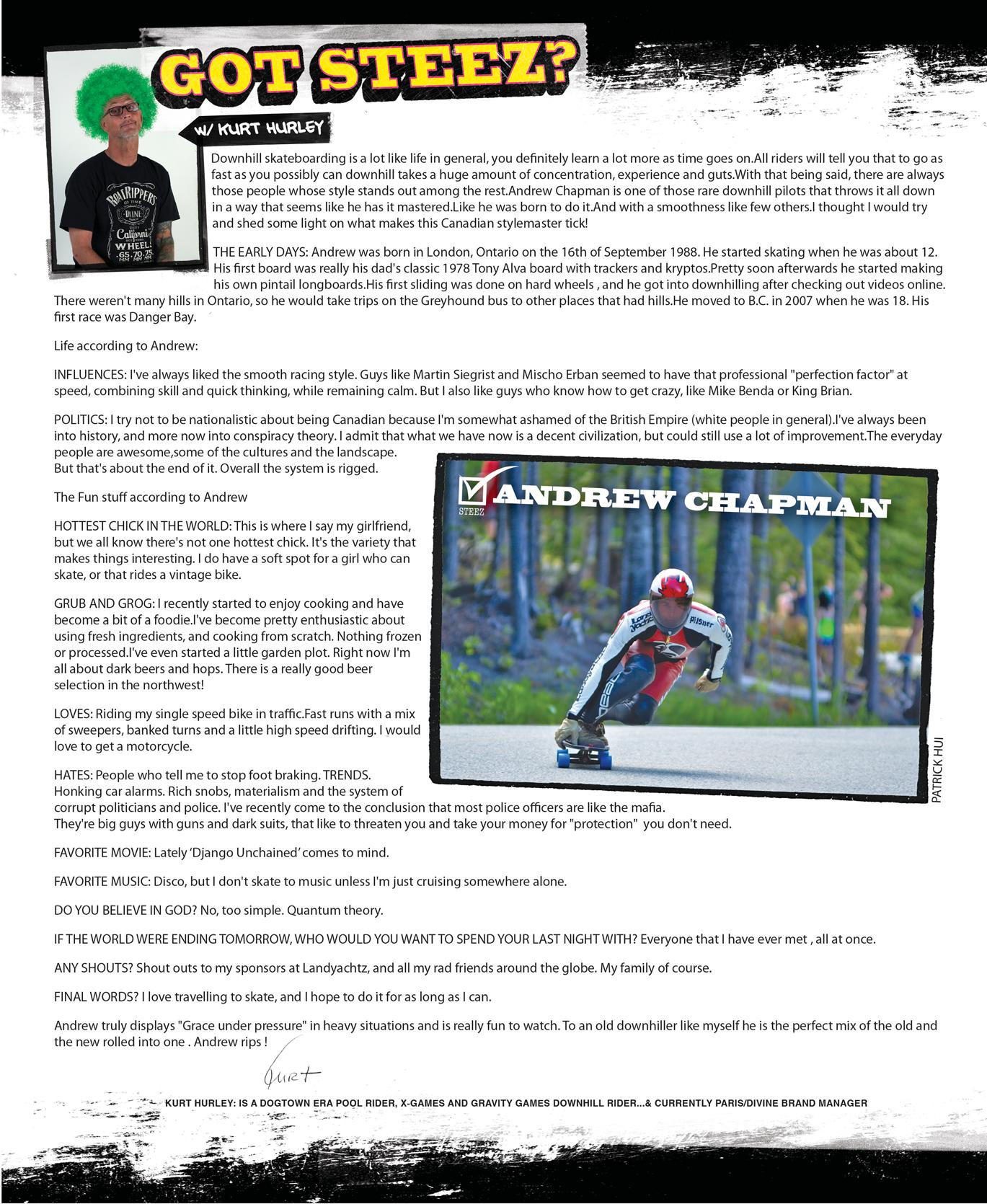 My journey with skateboarding started 38 summers ago. It’s been a source of incredible joy and it’s helped me deal with stress. know many of you share the same feeling that I derive from longboarding. There seems to be a universal groove with longboarding Call it flow, call it stoke — whatever it is, you feel a part of something truly special. It’s something that goes beyond the m and hype. The act of riding forges deep connections with the world and its inhabitants. In 1988 I found myself asking, “How do ness this energy to go beyond just riding and connect with others who share my passion?” My first inclination was to start a pe service for freestylers. (That’s not a typo — back in the ’80s people sent mail to each other to communicate.) I called it Freestyle International. Fast-forward 16 years and I started up the Skategeezer website. Then I wrote a book, followed by a magazine and a television show. I kept pushing forward and eventually wound up quitting the day job to work full time on CW in October 2003. That’s almost a decade ago, and to say the years have whipped by would be an understatement.