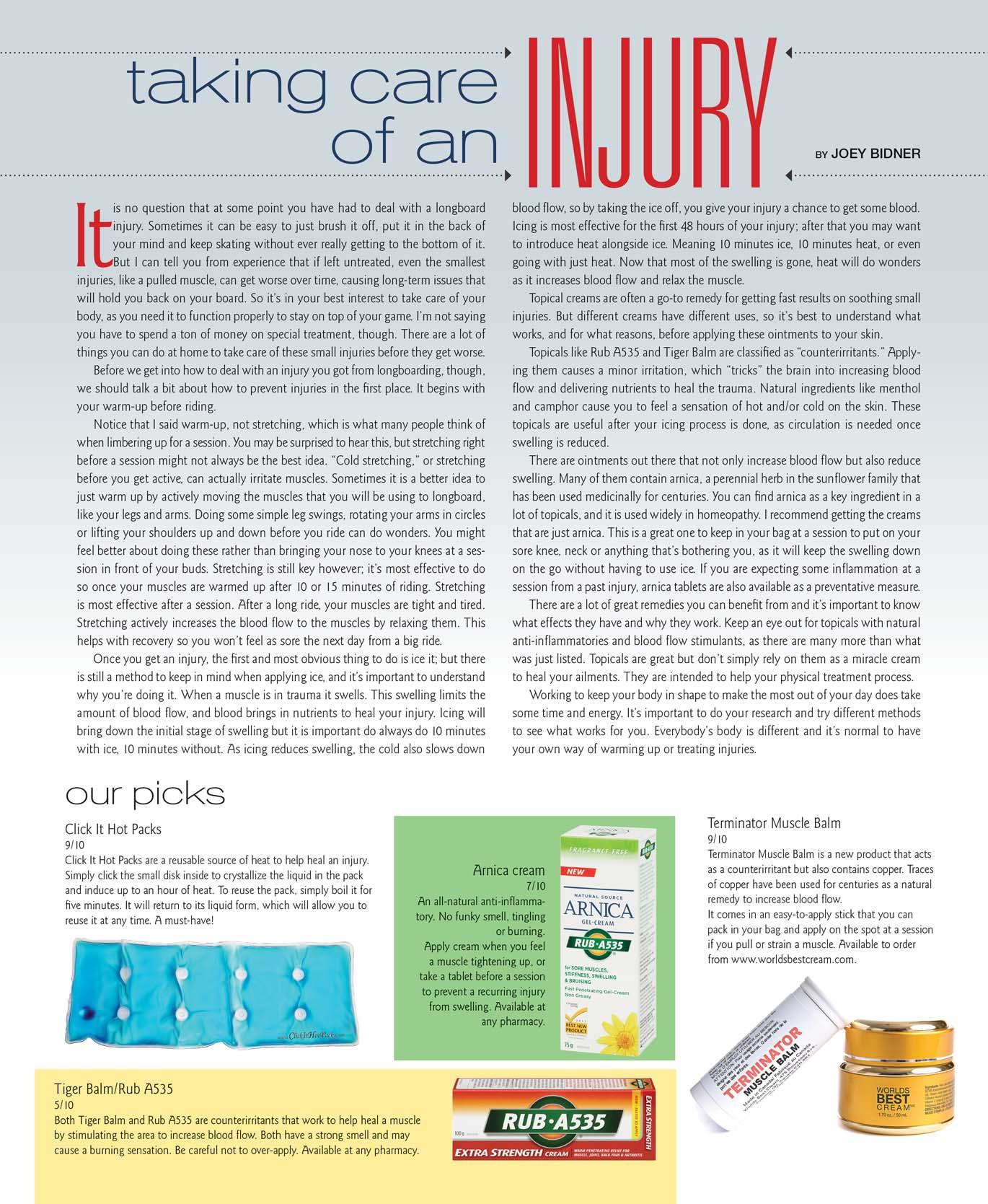32 EDITORIAL 44 NOTEWORTHY 50 LONGBOARD GIRLS CREW 52 SHOP TEAM PROFILE 54 WORLD FREESTYLE ROUND-UP 56 AUTHORITY, LONGBOARDING AND THE SEARCH FOR EVERYDAY HEROES 62 ROAD TRIP 2013 - NEW YORK 64 WHY I DO WHAT I DO - BRIAN PETRIE, EARTHWING 66 COMPANY PROFILE - FACTORY LAB 68 WAVESKATE - CONCRETE MEETS WAVES 70 GUNS 4 LONGBOARDS 72 MUIRSKATE DOWNHILL DISCO 78 TAKING CARE OF AN INJURY 79 THE METAPHOR OF LONGBOARD THERAPY 80 ONLY IN THE PHILIPPINES 86 HUMBLE HIPPIE 88 THE MAGIC & MAJESTY OF N-TENSE D-CENTZ 97 VANS WARPED TOUR 2013 - PASSPORT PROGRAM 100 LONGBOARDING FOR PEACE UPDATE 102 LONGBOARDING FOR PEACE - WATTS, CALIFORNIA 106 ARTIST PROFILE - ISHTAR BÄCKLUND 108 GOT STEEZ? 110 ROCKIT TALK CONTENTS