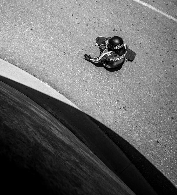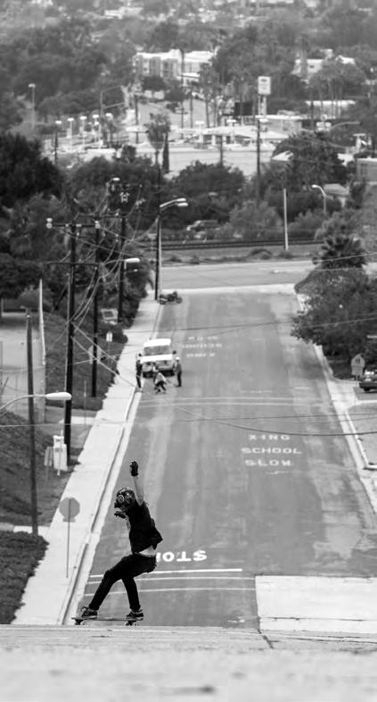 lie. I love blending the two elements of freestyle and downhill. As for racing I’m planning on hitting Maryhill, Whistler, Pikes Peak, and Angie’s Curves. Other than that, I’m working closely with Palisades developing boards within their line, as well as managing the skate shop I’m a co-owner of, Grind Skateshop. I feel so blessed, to not only be able to skate, but also work in the industry. I feel quite balanced in it all.