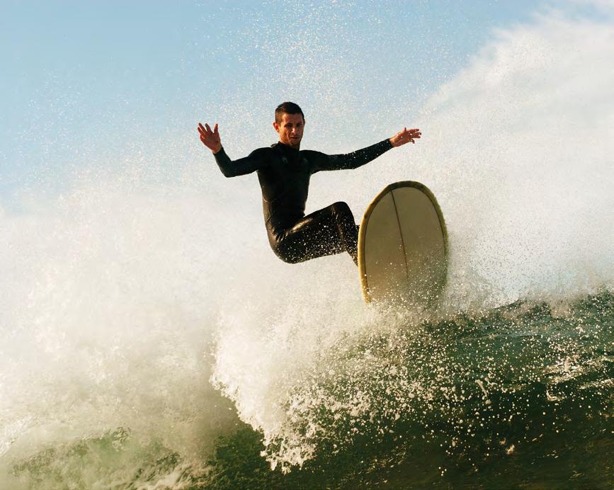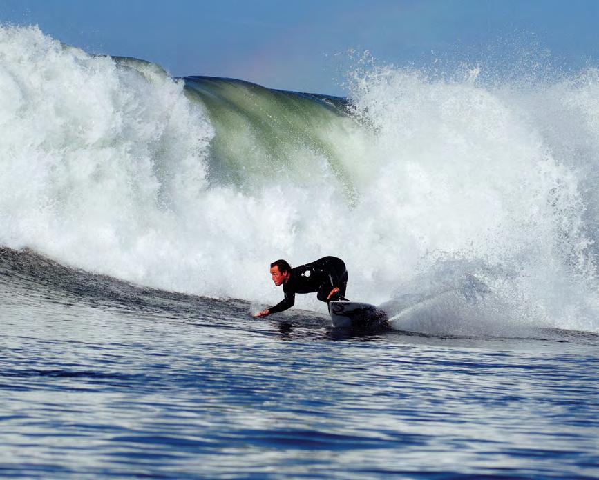 returns you back into the power pocket where you can get the most speed, and sets you up for a deep-railed bottom turn on your way back up to the lip. This idea of finding flow on an incline, whether it’s a hill, bank, ditch, park, or wave, is about maintaining speed so you have the power to drive off the glide.
