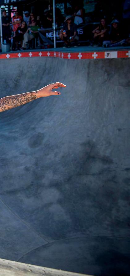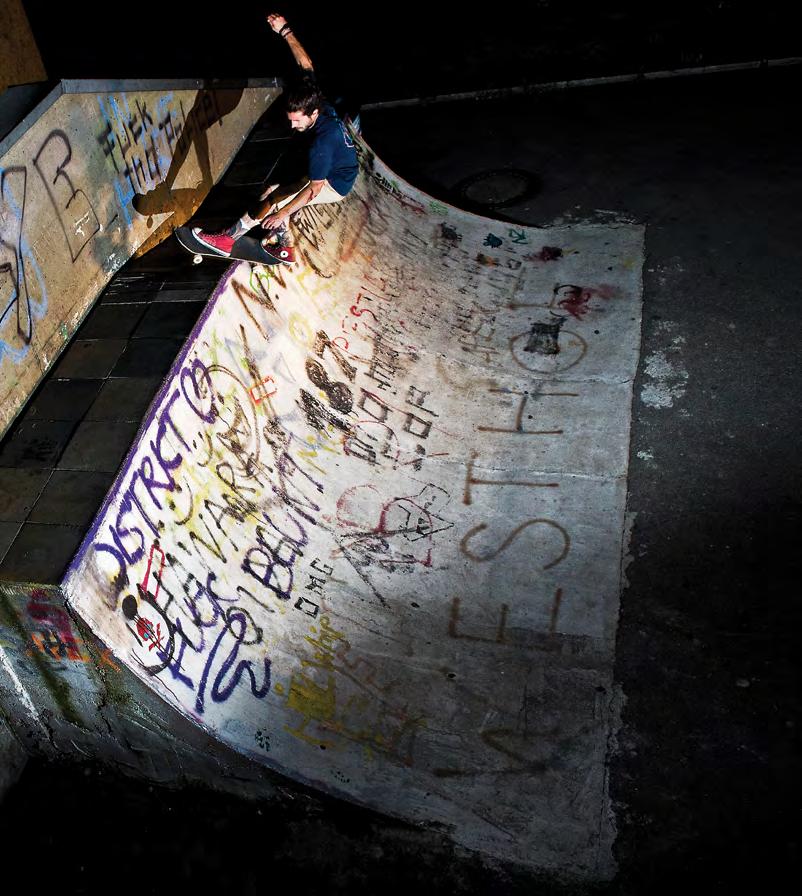 a hybrid that defies easy categorization. Even surfing has been changed by skating, as tricks developed on skateboards are now finding their way into the lineup, changing the way we look at waves. Less ‘mystical ocean’, and more ‘booster ramp’, surfing’s delayed adoption of air tricks has put it out of sync with skate, which is now experiencing a return the ethos of setting a rail and committing to a carve.