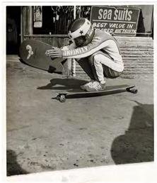 in the late 1940’s the skateboard evolved from the ocean like a tadpole, growing wheels and trucks where fins and rocker once lived. The act of riding that tiny oak plank with crappy metal wheels was called sidewalk surfing, however paltry an experience, it was compared to actually riding waves. And so it lived its early years, giving glide to surfers as they imagined water flowing under their wheeled boards.