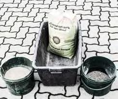2. Take a big plastic tube and add a correct ratio of cement (1 part), sand (2 parts) and gravel (3 parts). Notice: To measure out the correct ratio it can be helpful to work with same sized buckets, prefilled, with the materials.
