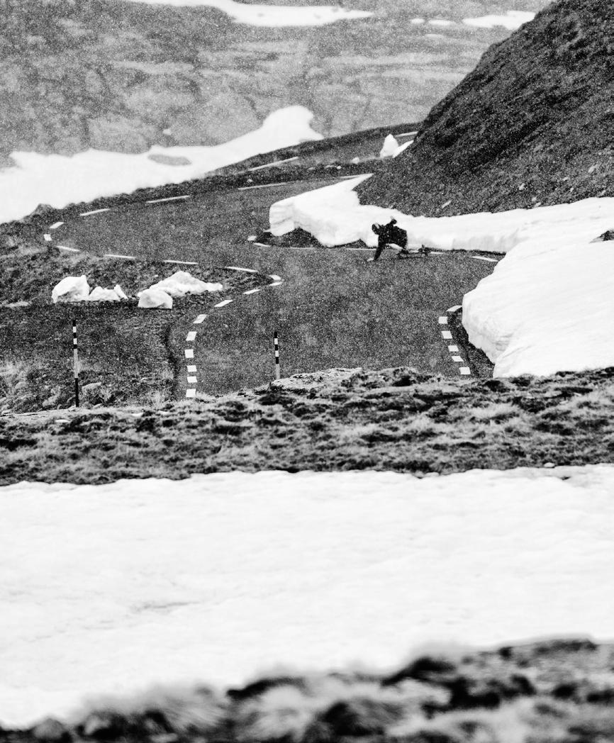 The longboard world is care-free, friendly and you can find a lot of incredible landscapes. I’m lucky, because near my home there are some of the best longboard spots in Europe; the Alps! When I decide to shoot, I study the weather, the road and then I contact the riders to create a perfect mix between nature and skateboard. I think that when you are in the mountains with great landscapes, friends, and your camera, it’s like a perfect dream - no stress, no bad thoughts - just happiness!