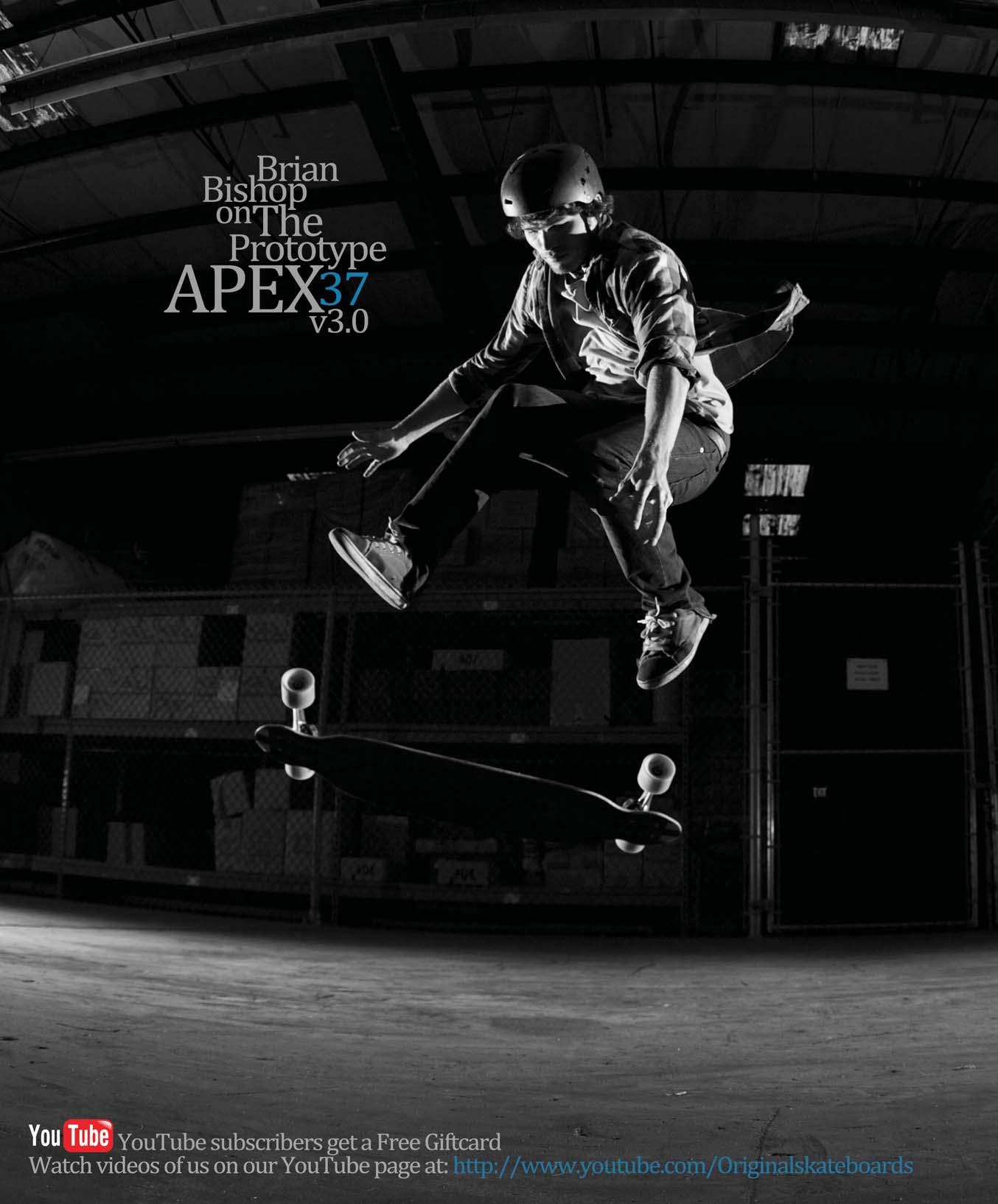 Here’s the reality: There is a multitude of skaters out there, all riding different types of skateboards. Added to this list is Cameron Black, who until recently only rode a street deck. A few months ago, I arranged to have an Original longboard sent to him. Here’s what Cameron thinks about it: “It’s a different experience, but I really like the way it handles and steers, and I love how smooth the ride is.” I still can’t figure out how Cameron skates, but he is now on his way to building a quiver. Cameron serves as an excellent example of what can be accomplished if you just put your mind to it. I encourage all skaters to lift off their veil of ignorance and see what’s out there. Instead of just skating one particular terrain or one type of board, open your mind to the possibilities. You might just discover something truly eye-opening. Enjoy the issue,