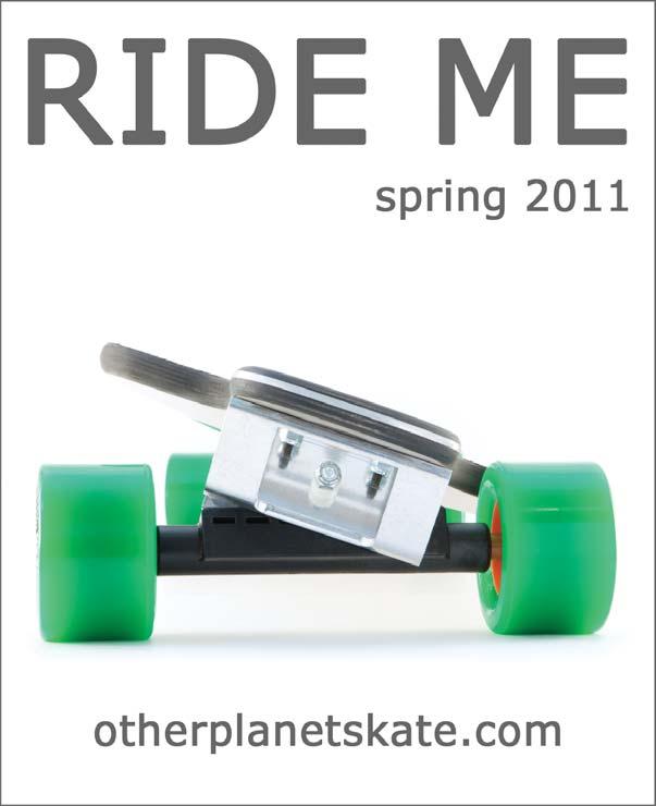 challenges; that’s just the way things go. There are some who will see this explosion of longboarding as a gold rush and try to exploit it. They’ll do whatever it takes to claim their stake. Some of these companies will be given the cold shoulder and won’t make it. Others will come out with a hot product that truly benefits longboarders, and they will see their fortunes rise. No matter what happens, 2011 is going to be a pretty amazing ride. Enjoy the issue!