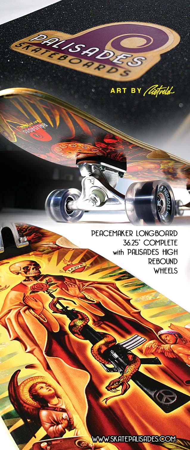 Miramar Longboards is hard at work with the new three-deck “Masters of Mars” series with art by veteran skateboard artist Kray Sudderth. Contact dave@miramarlongboards.com for more info.