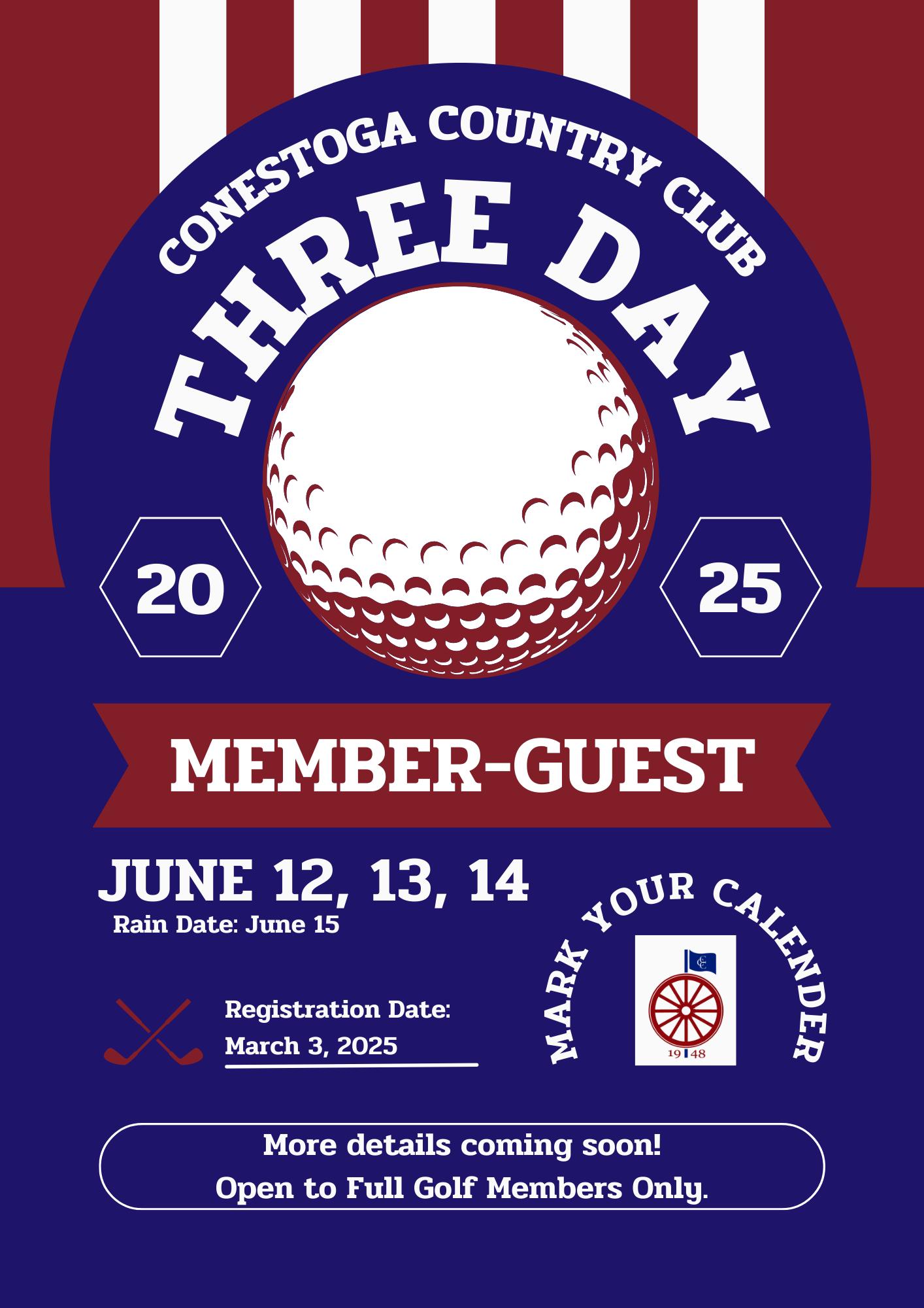 The2025MGADeepinplanningstagesfortheupcomingseasonandthe2025 MGAScheduleshouldbefinalizedinthecomingweeks.TheThree-DayMember Guestwillhighlighttheyear’sscheduleonJune12th,13thand14th.Wewillhost2 onedayMember-Guests,thefirstinMayandsecondinSeptember.Theschedule willbesentoutandpostedonthewebsiteinearlyFebruary.