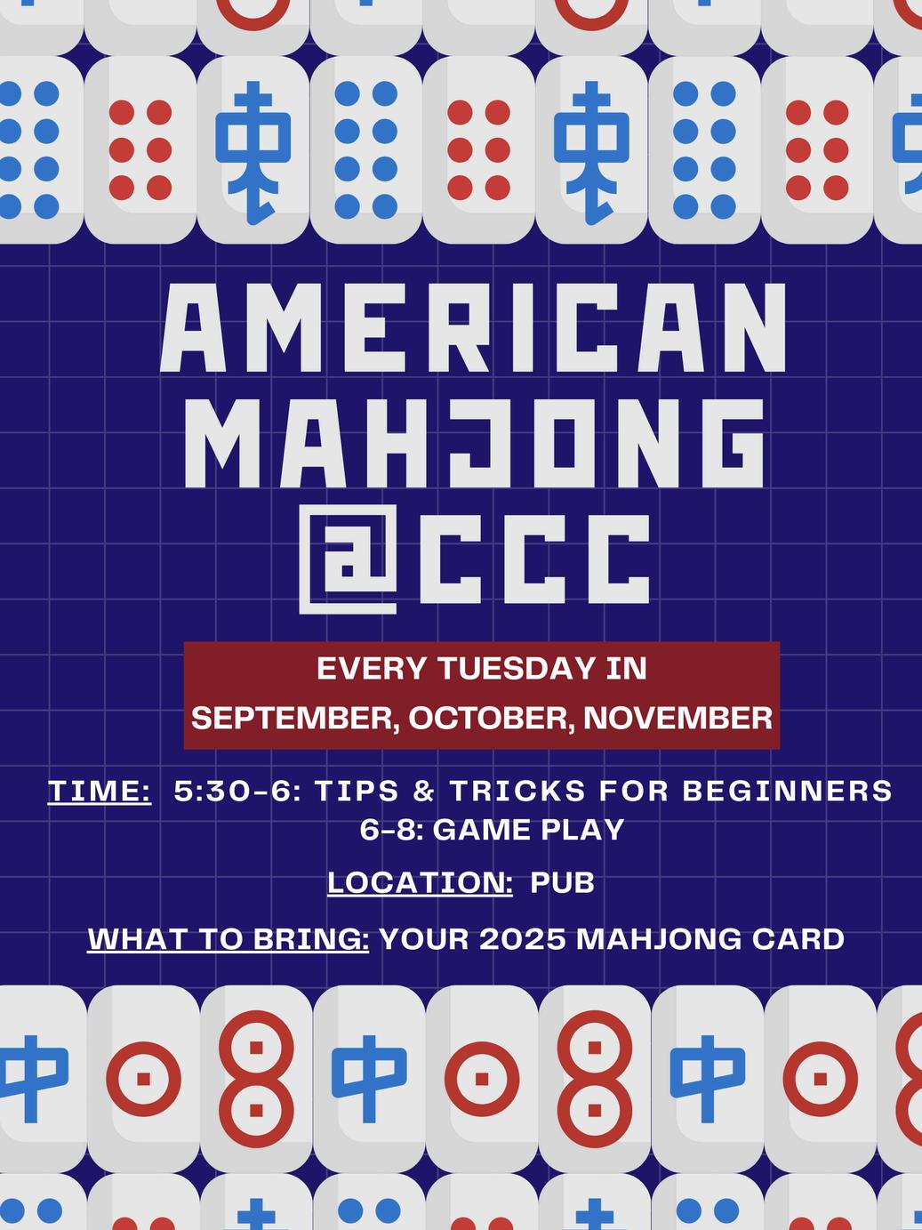 Mahjong – Every Tuesday- Friendly competition, laughs, and plenty of table chatter make this weekly tradition a favorite.
