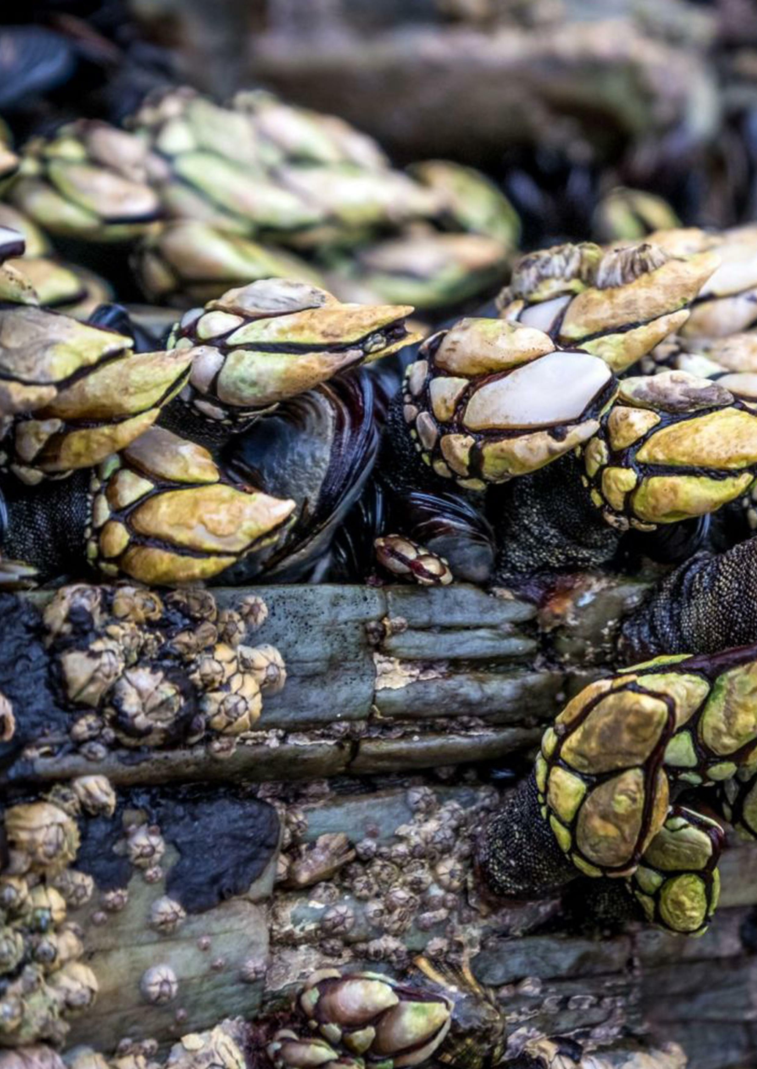 Sin lugar a duda, este crustáceo cirrópodo aficionado a mar batido y base rocosa constituye una delicia gastronómica de primer orden, y junto con las angulas, quisquillas, ostras y almejas babosas, piezas muy cotizadas culinariamente, no al alcance de todos. Pollicipes pollicipes, que es su nombre científico, es además, un ser hermafrodita, que vive fijo al fondo o como parásitos, con el cuerpo cubierto por un caparazón, y sus patas torácicas, en forma de cirros, actúan como filtros en la captura de las partículas alimenticias. Su hábitat son las zonas de fuertes resacas donde el mar impacta violentamente.