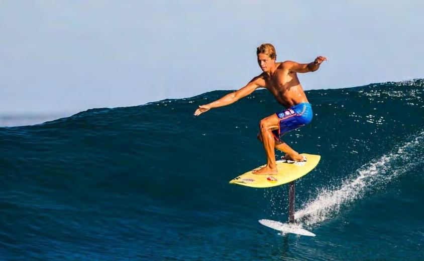 El foil surf (o surf foil) es un deporte acuático que utiliza una tabla de surf con un hidroplano (una aleta similar a un ala) debajo, lo que permite que