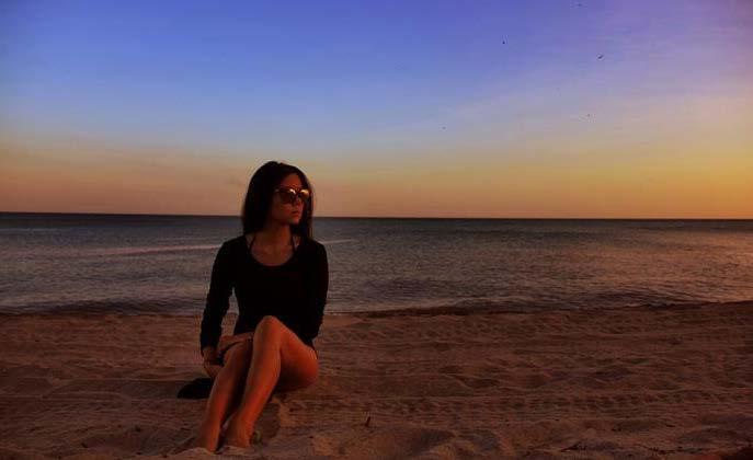 Y el sábado por la tarde, cayendo el sol, volví a ver a la morena de la playa, como la otra vez, sentada en la playa y mirándome.