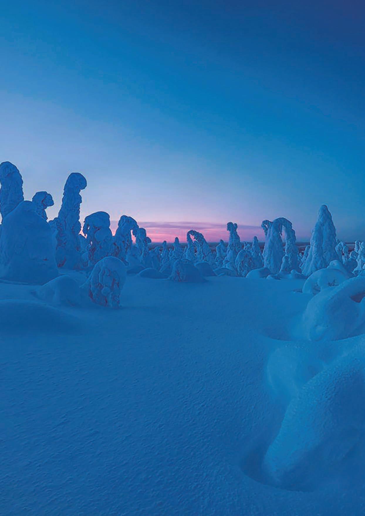 En invierno en Laponia tan solo hay 4 horas de sol, quedando constantemente en el horizonte y haciendo que todos los días tengan una luz de atardecer durante esas 4 horas. Para quien le guste la fotografía tener esta luz en un paisaje nevado es un espectáculo y merece la pena vivirlo.